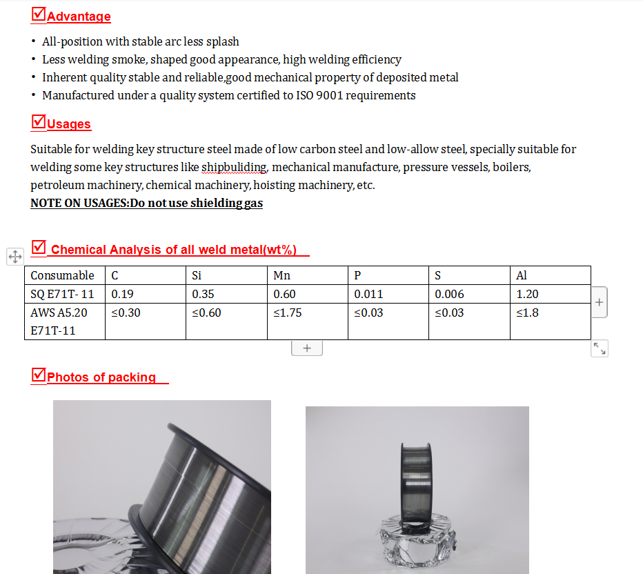 MORE INFORMATION OF OUR FLUX CORED WELDING WIRE